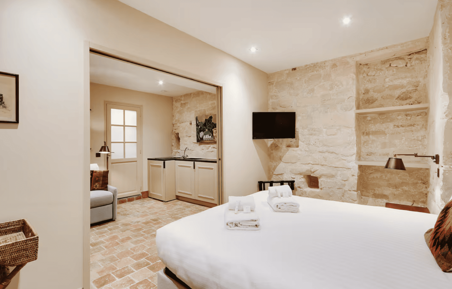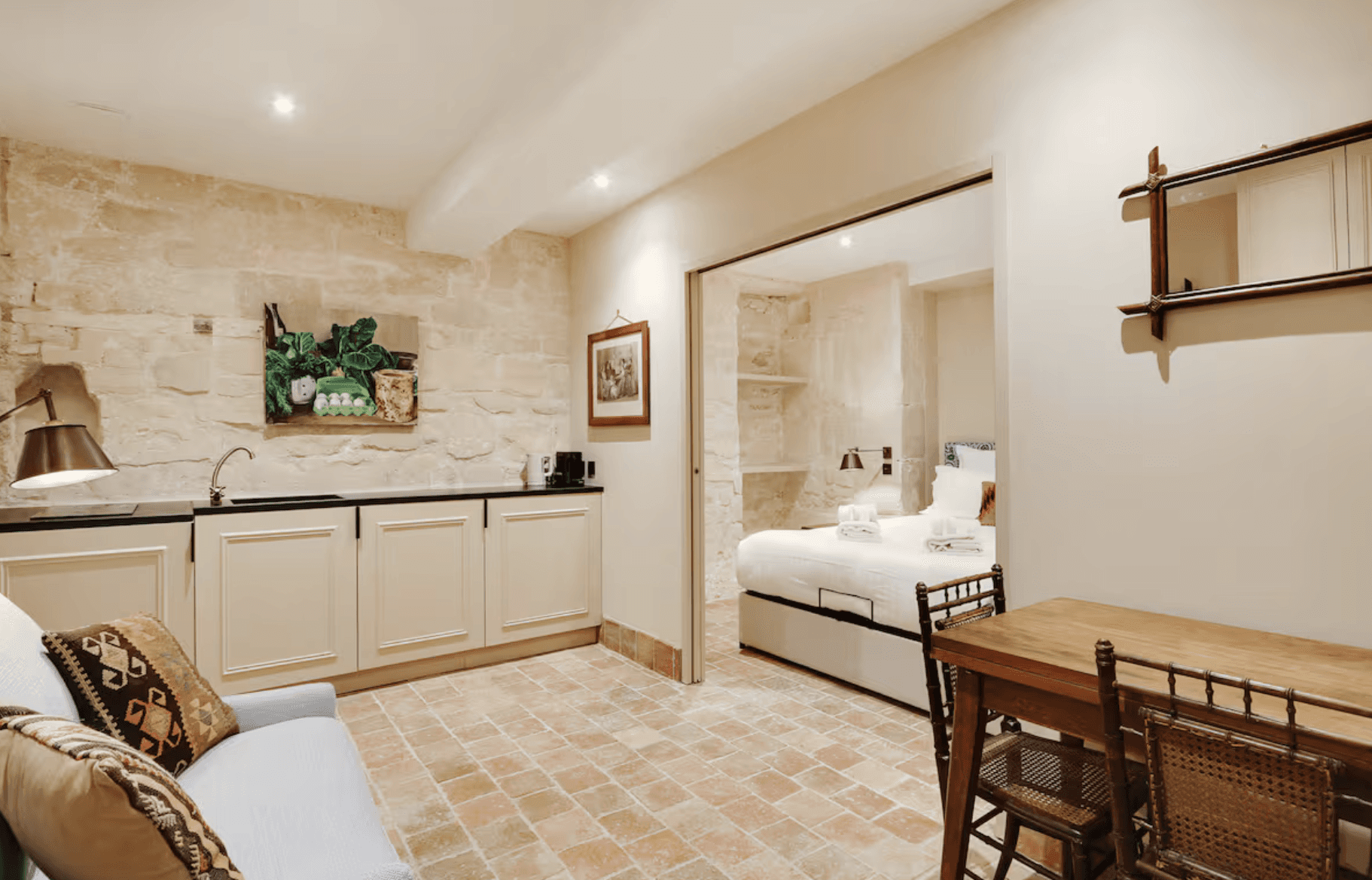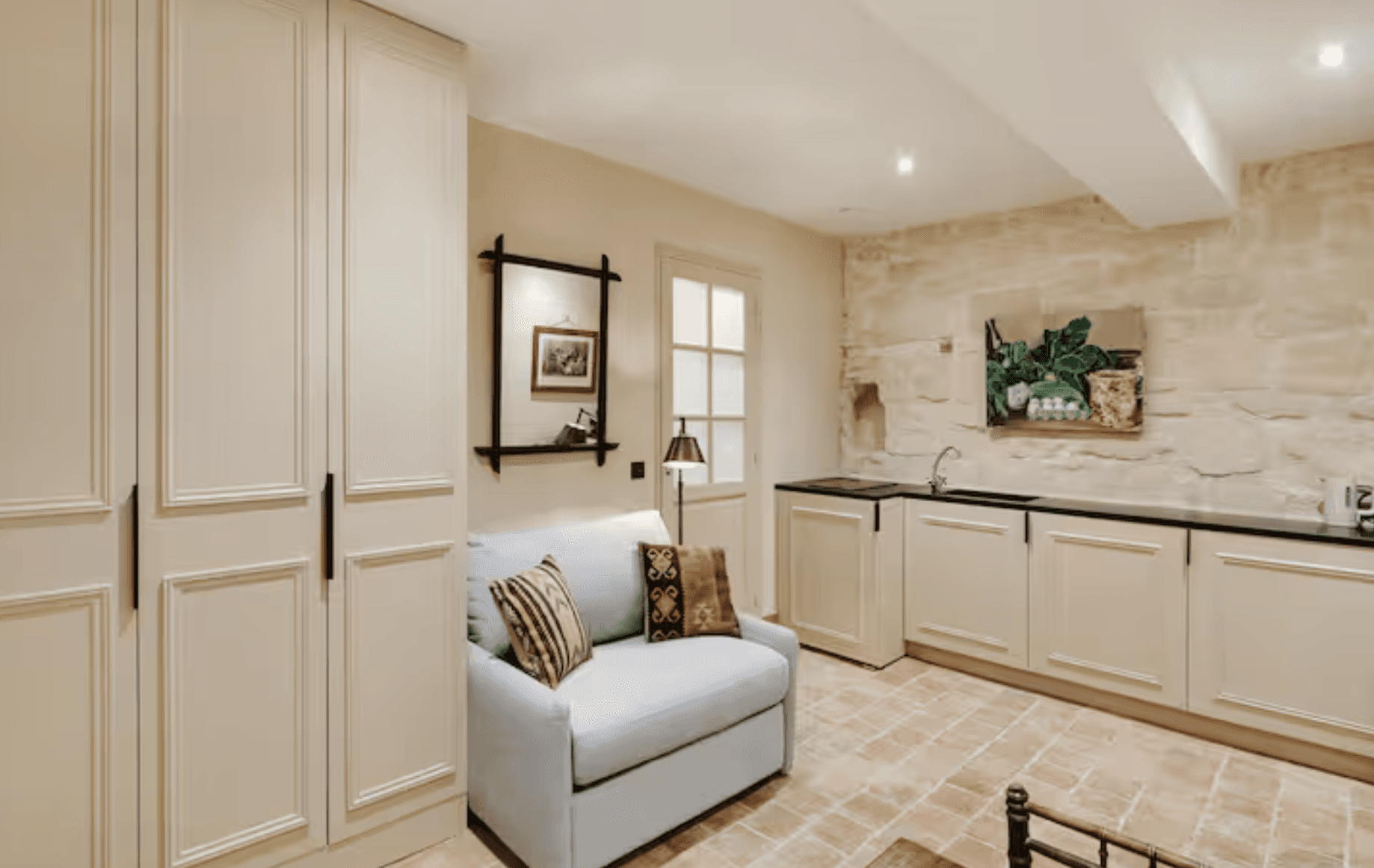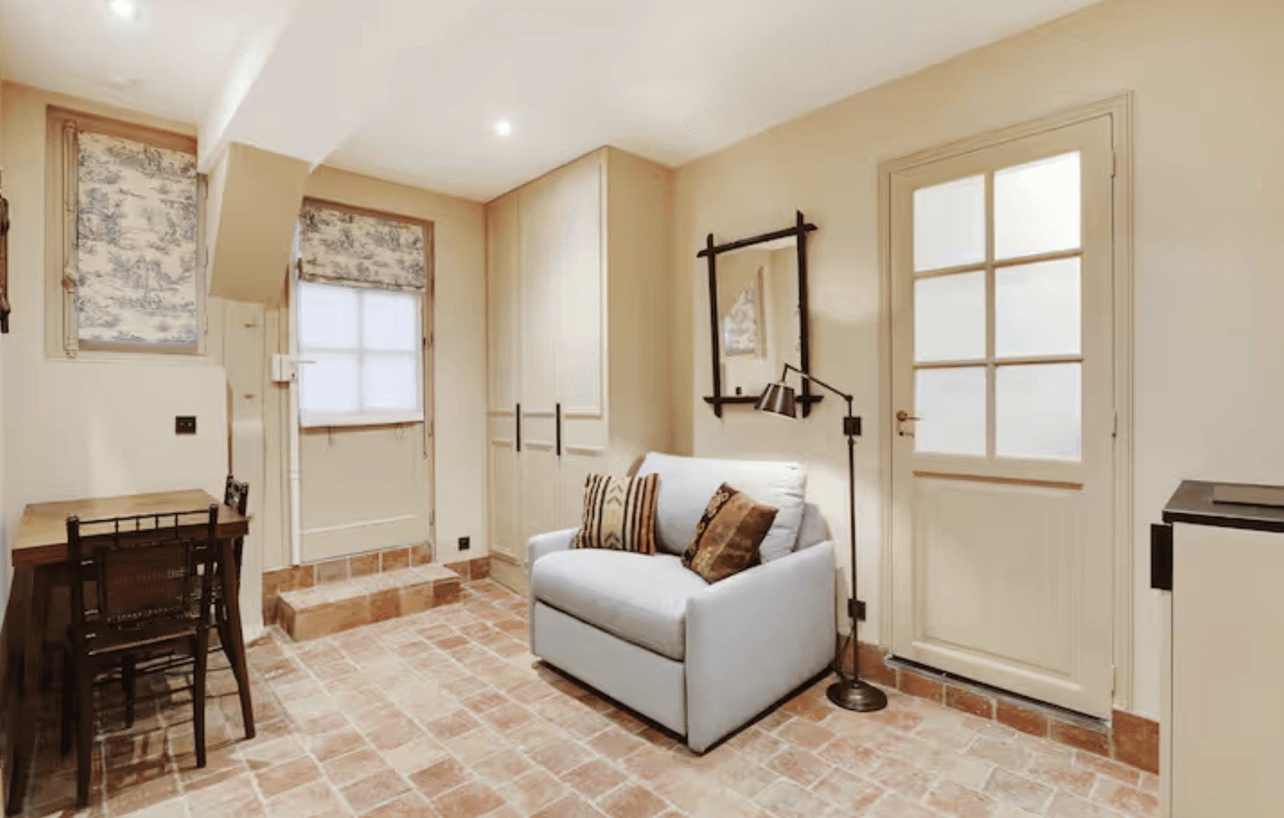 Set within a quiet inner courtyard, this elegant 27m² air-conditioned apartment offers a peaceful and comfortable stay for up to three guests. Located on the ground floor of a traditional Parisian building, the apartment opens onto a bright living space featuring a cosy lounge with a comfortable single sofa bed, and a fully equipped kitchen designed for a seamless stay. The separate bedroom includes a Queen-size bed, generous storage, and a connected flat-screen TV, offering a calm and restful retreat. The bathroom is thoughtfully designed with a shower and toilet, providing all the comfort needed. To ensure a high level of comfort, the apartment includes hotel-quality linens and towels, high-speed Wi-Fi, a flat-screen television, and a selection of welcome amenities. Please note: The booking link directs you to the Pick A Flat agency website, where your reservation will be completed securely through their service