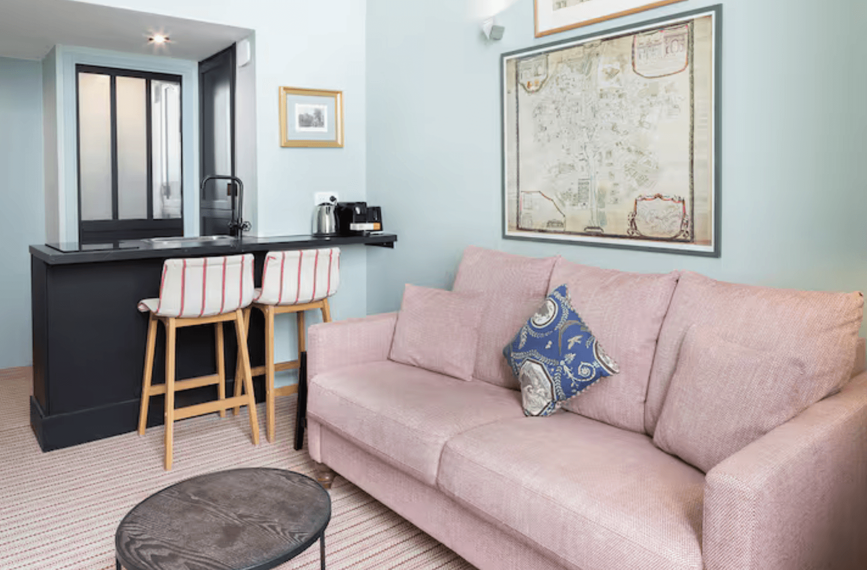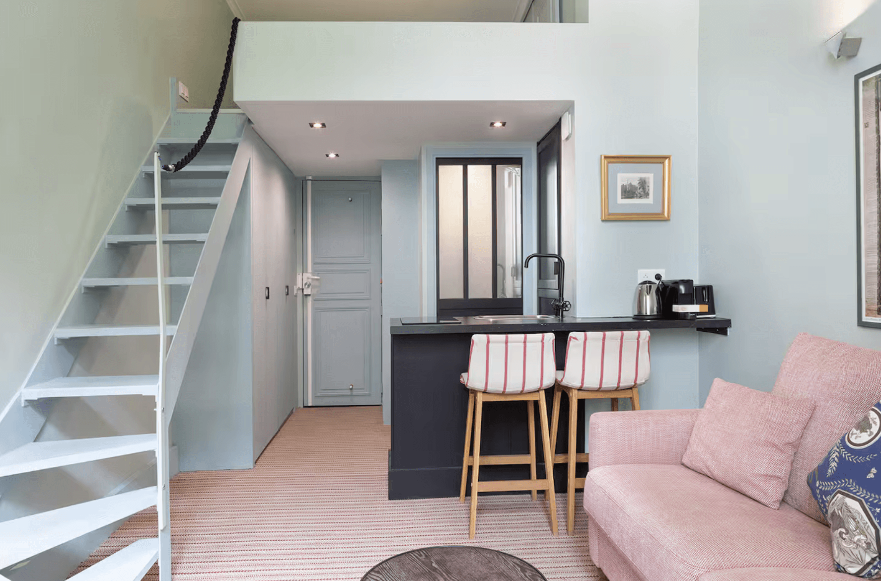 Discover this charming and luminous 25m² studio, designed to offer a cosy and elegant Parisian stay for two guests. Located on the first floor of a characterful Parisian building, the studio features a warm and refined atmosphere with carefully selected materials and soft tones. The open living space includes a fully equipped kitchen, a comfortable lounge area, and a mezzanine Queen-size bed, creating a functional yet inviting layout. The bathroom is equipped with a shower and toilet, completing the space with simplicity and comfort. For a seamless stay, the studio includes hotel-quality linens and towels, high-speed Wi-Fi, a flat-screen television, a washing machine, a Nespresso coffee machine, and a selection of welcome amenities. Please note: The booking link directs you to the Pick A Flat agency website, where your reservation will be completed securely through their service